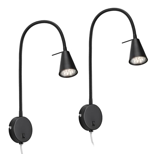 BRILONER - Lot de 2 appliques murales intérieures avec interrupteur sur le boîtier, orientables, lumière blanche chaude, applique murale chambre, lampe chambre, appliques, 45 x 8 x 20,5 cm, noir