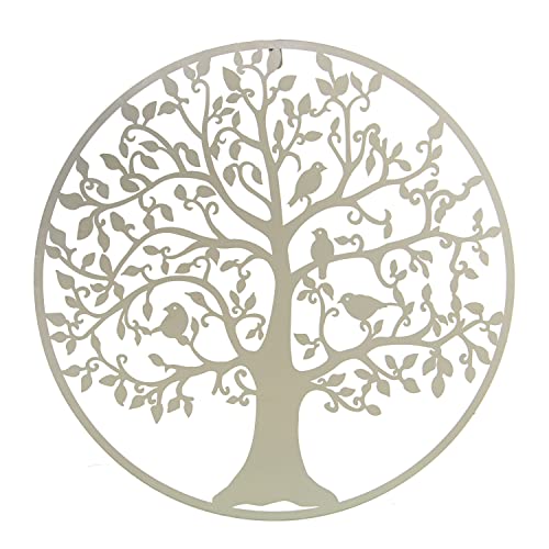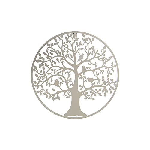 DRW Lot de 2 Appliques murales Rondes avec Arbre en métal Blanc 60 x 1,3 cm