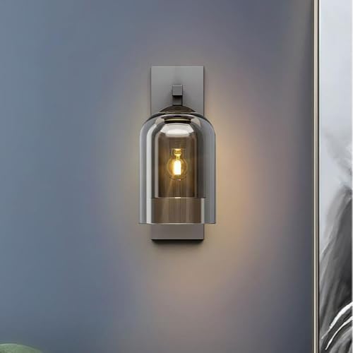 Appliques Murales Modernes Noires de Style Industriel en Métal Idéales pour Une Chambre Un Salon Ou Une Salle de Bain Abat-Jour en Verre Transparent