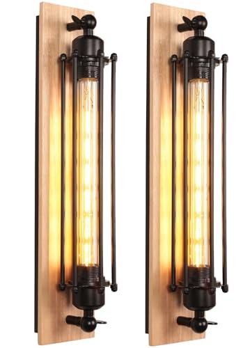 Lot de 2 Appliques murales industrielles Noires Lampes Murales Vintages E27 Spots muraux Intérieures luminaires Murales en Métal et Bois 48cm pour Chambre Salles à manger Couloirs Salon