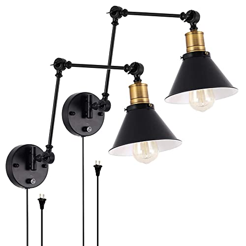 XANAYXWJ Lot de 2 Appliques murales industrielles Vintage Noires à Bras oscillant – à intensité Variable, parfaites pour la Chambre à Coucher, Le Salon, la vanité, Les luminaires montés sur Le Bureau