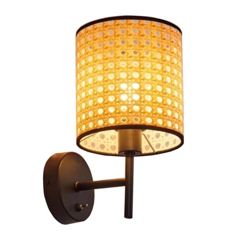 Appliques murales Abat-Jour en rotin Naturel tissé Art Simple Lampe montée en Bambou Base E27 Lampe de Chevet Industrielle pour Chambre à Coucher Salon Couloir Escalier Salle à Manger