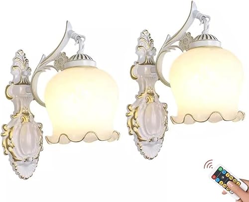 Lot de 2 appliques murales en verre sans fil avec télécommande pour salon, chambre à coucher, salle de bain, porche, couloir, ampoules rechargeables sans câblage