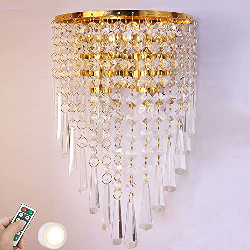 LVSEWOA Appliques murales sans Fil avec télécommande, à Piles, avec éclairage Mural de Luxe en Cristal doré et chromé, pour Salon, Couloir (doré)