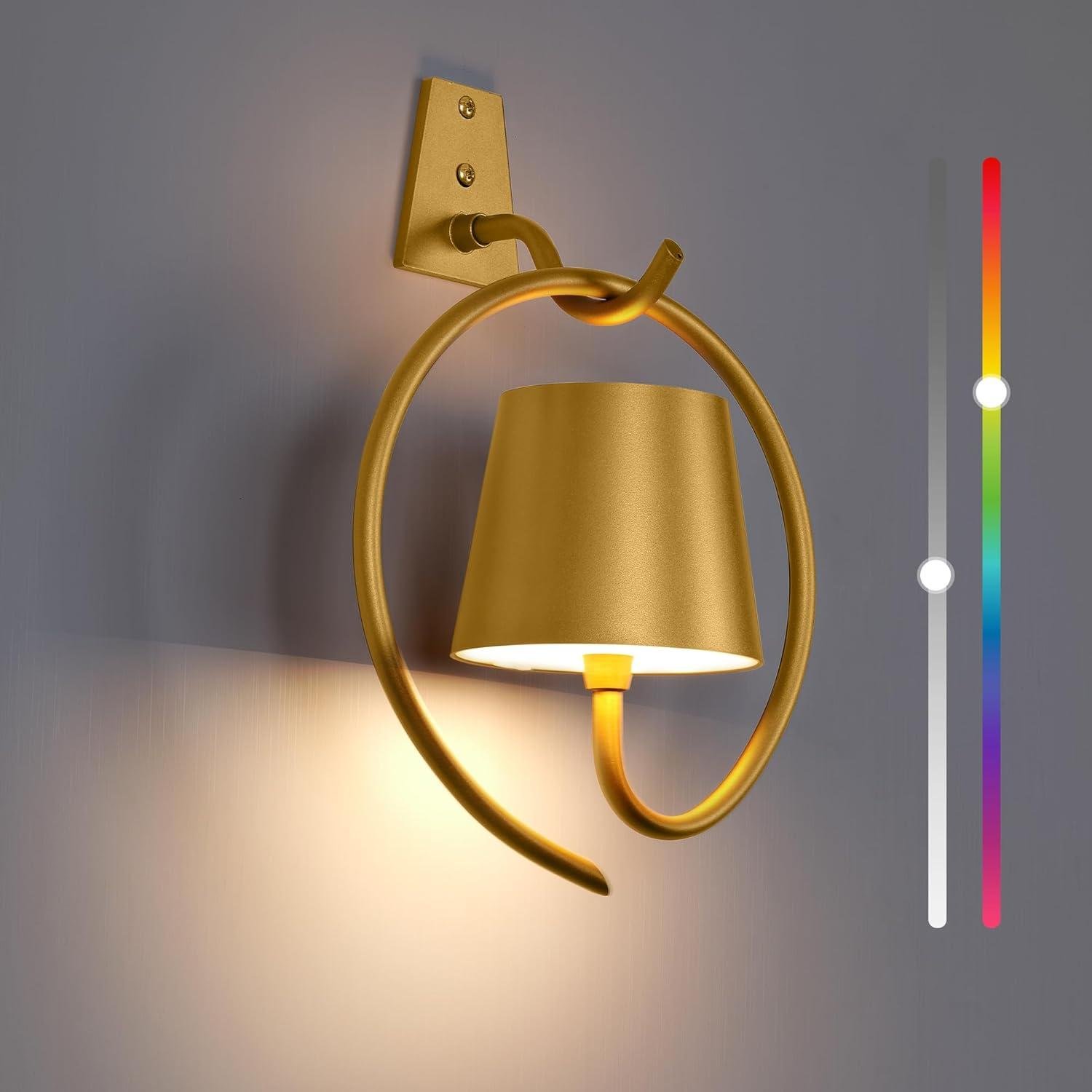 Applique murale RGB avec batterie, sans branchement électrique, lampe LED, éclairage extérieur, appliques murales sans fil en or.