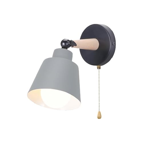 TOKTOP Applique Murale Intérieur avec Interrupteur, Vintage Lampe Murale E27 Bois Industrielle Luminaires Appliques pour Chambre Salon Couloir Gris