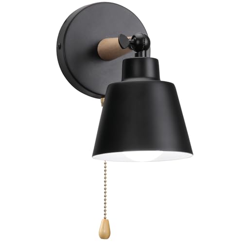 Lightess 2 Pack Applique Murale Industrielle Interieur, Lampe Murale avec Tirette Interrupteur, Vintage Fer E27 Noir Appliques pour Salon Chambre Couloir