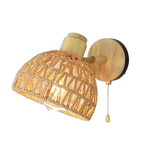 TOKTOP Applique Murale Rotin avec Interrupteur, Vintage Bohème Lampe Murale E27 Bois Intérieur Réglable Luminaires Appliques pour Chambre Salon Couloir