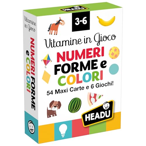 HEADU - Cartes vitamines en Jeu Nombres, Formes et Couleurs - 54 Cartes Maxi et 6 Jeux | Cartes illustrées pour Apprendre à Compter, Comparer et classer, Jeu éducatif Enfants 3-6 Ans, idée Cadeau