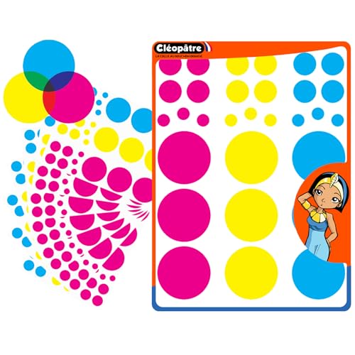 CLEOPATRE – Gommettes Autocollantes Rondes Translucides - Cercle chromatique pour apprendre les couleurs – 3 couleurs – Paquet de 18 feuilles (540 stickers)