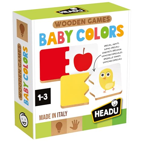 HEADU - Wooden Game Baby Colors - Apprendre Les Couleurs en Jouant | Jeu Éducatif en Bois 2-4 Ans, Formes et Couleurs, Mémoire Visuelle et Motricité Fine, Idée Cadeau, Fabriqué en Italie