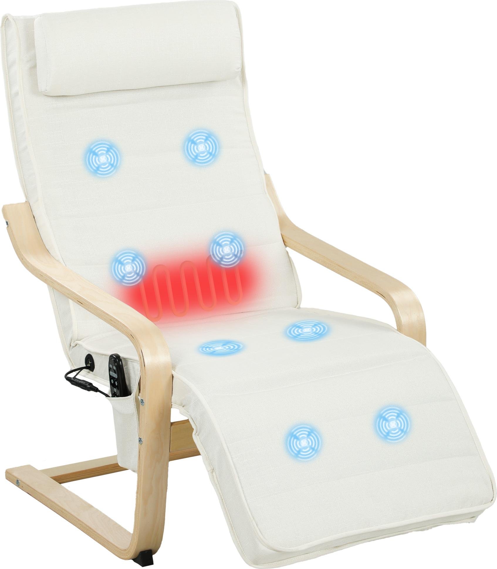HOMCOM Fauteuil de salon, fauteuil relax massant et chauffant avec dossier haut, appui-tête, repose-pieds réglable, télécommande et poche latérale, tissu aspect lin, pour chambre salon, crème