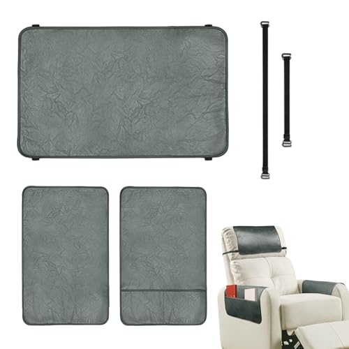 NNSMUN Housse D'accoudoir De Canapé avec Poche, Housse de Fauteuil Relax Inclinable Electrique Antidérapant, 1/2/3 Places Canapé Appuie-tête pour Maison Salon (Gris,1 Place (3 PièCes))