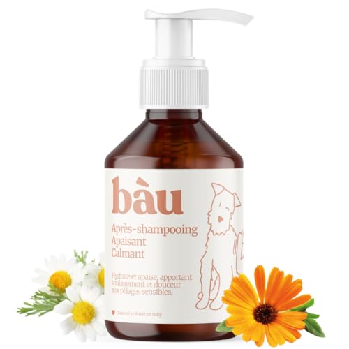 BAU Après-Shampoing Chien Poil Sensible et Peau Délicate, Démêlant Anti-Démangeaisons à la Calendula et Huile d’Amande Douce, Hydratant, Apaisant et Assouplissant pour Irritations et Démangeaisons