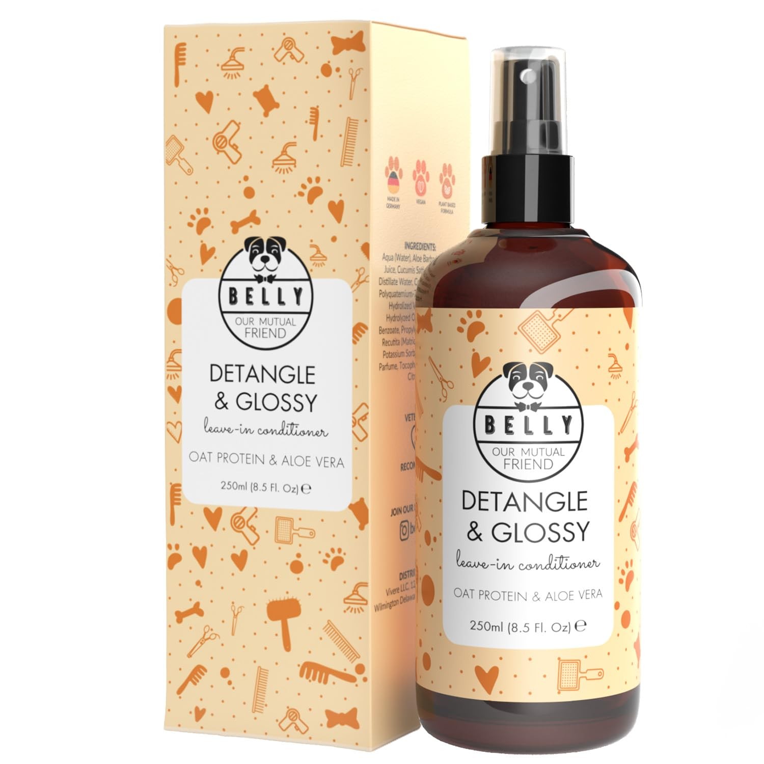 Belly 2-en-1 Spray Démêlant & Après Shampoing Sec pour Chien -250ml- Adoucissant sans rinçage - Démêlant à l'Aloe Vera - sans Silicone et sans Paraben