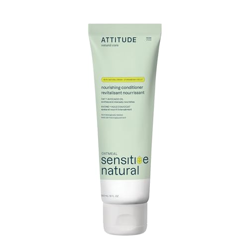 ATTITUDE Après-Shampoing Ultra Doux pour Cuir Chevelu Sec et Sensible, à l’Avoine Apaisante, Ingrédients d’Origine Naturelle, Testé Dermatologiquement, Démêlant Végan, Nourrissant, 240 mL