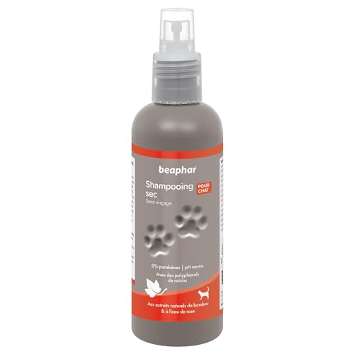 BEAPHAR – Shampoing Sec Premium ultra-doux et parfumé pour chat – Aux extraits naturels de Bambou & d’eau de Rose – Revitalise et rafraîchit le pelage – Limite l’excès de sébum – Sans rinçage – 200 ml