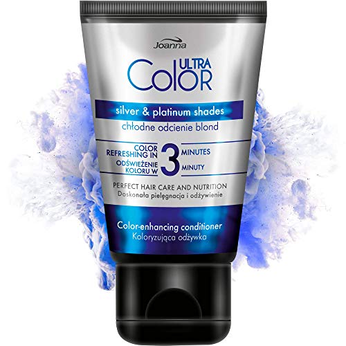 Joanna Ultra Color Après-shampoing protecteur de la couleur argent et platine pour cheveux naturels et colorés, sans ammoniaque, rafraîchissement et intensification des couleurs en 3 minutes, 100 ml