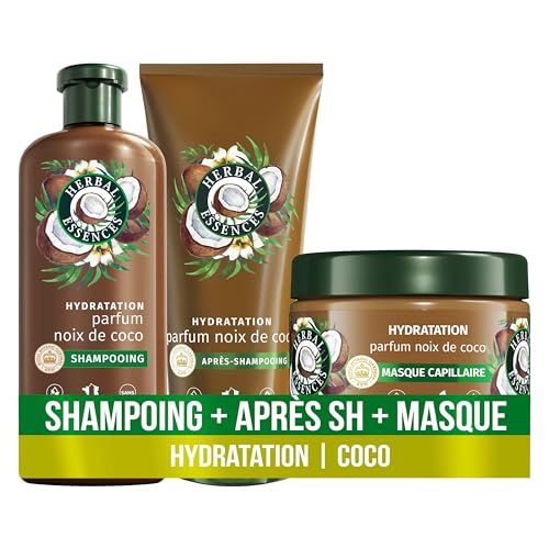 Herbal Essences Routine Hydratation Parfum Coco Avec Shampoing 250ml, Après-Shampoing 200ml Et Masque 500ml. Aide à Nourrir et Lisser, Pour Des Cheveux Doux. Ingrédients d'Origine Naturelle*, Végan