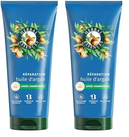 Herbal Essences Réparation Après-Shampoing Huile d'Argan 350ml Cheveux Abîmés. Nutrition Intense pour Cheveux Doux et Lisses. Ingrédients d'Origine Naturelle*, Végan et non Testé sur les Animaux