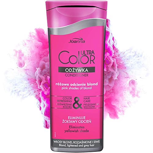 Joanna Ultra Color - Après-shampoing pour cheveux roses et roses - Rafraîchissement et soin des couleurs - Hydratant - Pour les tons blonds froids blond argenté et platine - Après-shampoing contre les