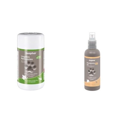 Beaphar – Lingettes nettoyantes Yeux, Oreilles, Pattes et Pelage pour Chien et Chat & – Spray Shampoing Sec Ultra-Doux pour Chien – Extraits naturels d'Aloe Vera et de l'eau de Framboise – 200 ML