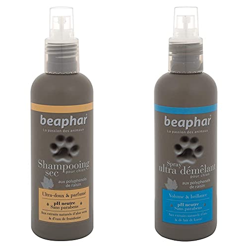 Beaphar – Spray Shampoing Sec Ultra-Doux pour Chien –200 ML & Spray Ultra-démêlant pour Chien – Extraits naturels d'Iris, de Lait de Karité et du polyphenol de Raisin– 200 ML