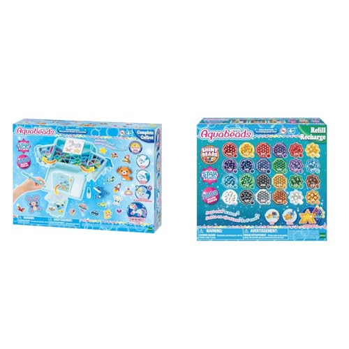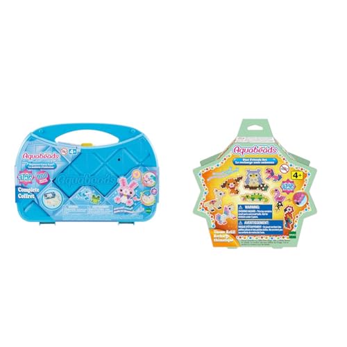 Aquabeads - La mallette d'initiation - 31912 - Coffret de Loisirs créatifs & 31602 - La recharge amis animaux, Plastique, Multicolore