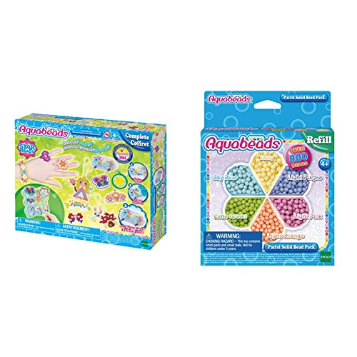 Aquabeads-Mes Accessoires féeriques à créer, 31766 & La Recharge Perles Pastel - 31360 - Recharge Perles Assorties - Loisirs Créatifs