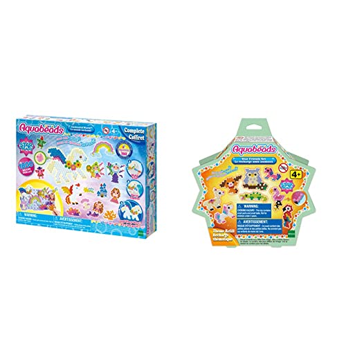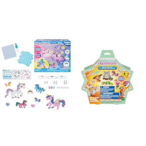 Aquabeads - Les Licornes Féériques - 31944 - Coffret de Loisirs Créatifs nouveau packaging, Multi Color, Taille unique & 31602 - La recharge amis animaux, Plastique, Multicolore