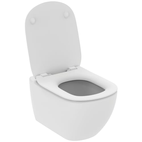 Ideal Standard TESI Ensemble Cuvette WC Suspendu Sans bride, Abattant UltraFin, Simple sans frein de chute, Technologie Aquablade, Cuvette de toilette Blanc T354701