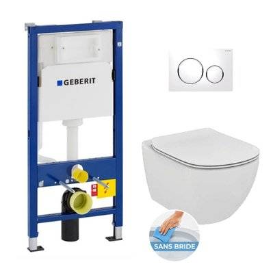 Geberit Pack WC Bati-support autoportant DUOFIX + suspendu Ideal Standard TESI AquaBlade sans bride Abattant slim softclose