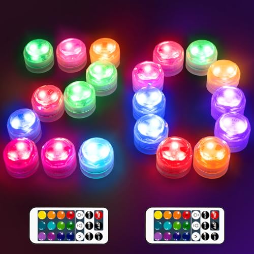HL Lot de 20 mini bougies LED submersibles avec télécommande - Étanches - Petites lumières LED pour vase, aquarium, jacuzzi, fête, Halloween, décoration de mariage
