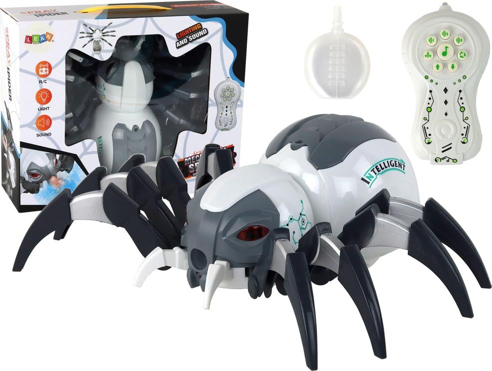 Grande araignée blanche et grise télécommandée et alimentée par piles