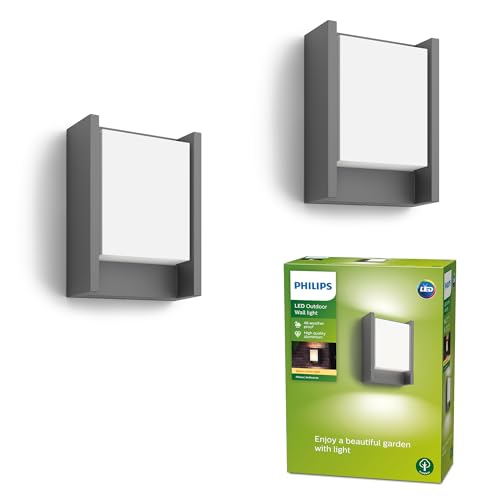 Philips Arbour Applique murale LED d'extérieur (6 W), luminaire d'extérieur résistant aux intempéries avec lumière blanc chaud, éclairage LED à économie d'énergie, anthracite, pack de deux