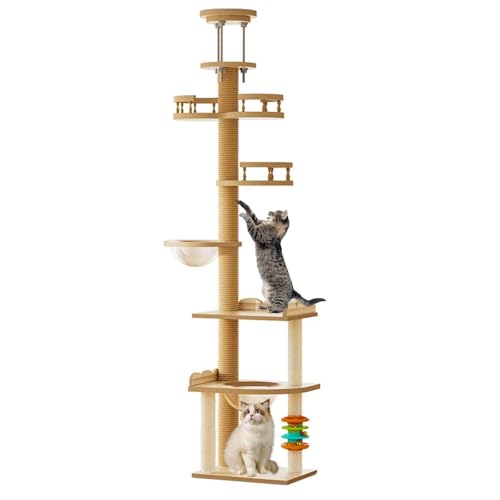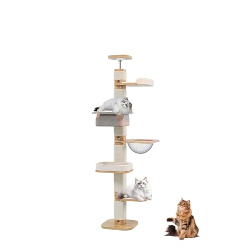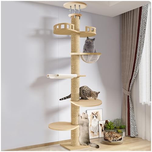 Arbre a Chat, Arbre a Chat Sol au Plafond, griffoir en Chanvre à 6 Niveaux, d'activité pour Chats Haute et Robuste avec et perchoirs, pour Grimper et Jouer Bois A