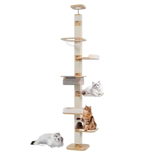 PJDDP Arbre À Chat du Sol Au Plafond, Arbre À Chat Haut Plafond, Centre D'activités d'escalade pour Chat À 5 Étages, Hauteur 270 Cm, pour Grimper, Gratter Et Jouer
