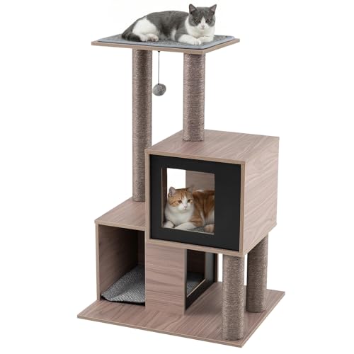 GOPLUS Arbre à Chat Design Plusieurs Niveaux en Bois avec Perchoir Supérieur, Griffoirs et Condo pour Maine Coon et Chats d'Intérieur (141cm)