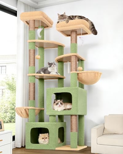 Globlazer Arbre a Chat Vert Cactus Grand Hauteur 178 cm avec Doux Hamac, 2 Grandes Niches, Plateforme, Pente Sisal Peluche, Jouets, Arbres à Chat Coin Solide pour Gros Chats Repos Jeu (F70 Pro, Vert)