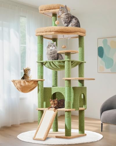 Taoqimiao Arbre a Chat XXL Grand Format,183cm Stable Arbre à Chat Maine Coon avec Condos Spacieux pour Chats, 5 Griffers, Très Grand Plateformes, Hamac, Panier pour Matou, MS045T Vert