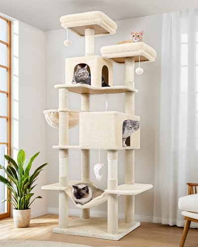 Taoqimiao Arbre a Chat XXL Grand Format,183cm Stable Arbre à Chat Maine Coon avec Condos Spacieux pour Chats, 5 Griffers, Très Grand Plateformes, Hamac, Panier pour Matou, MS045M Beige