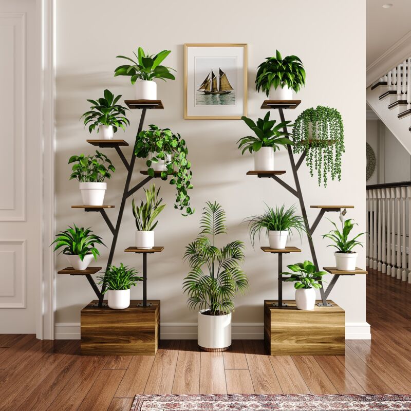 Étagère en forme d'arbre, bibliothèque à 6 niveaux et 3 colonnes,17 étagères de rangement grillagées