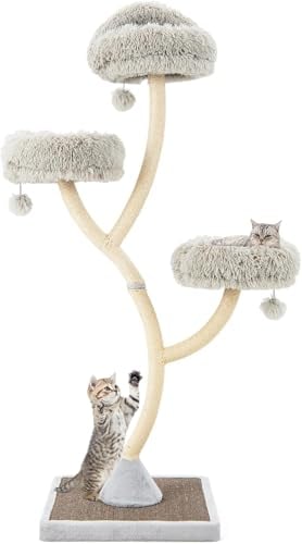 FANTASK Arbre à Chat en Bois de 178 cm avec 3 Surfaces de Couchage Chaudes, Grand, avec balles en Peluche et Troncs en sisal, Meuble pour Chat, Tour pour Chat avec Structure en métal