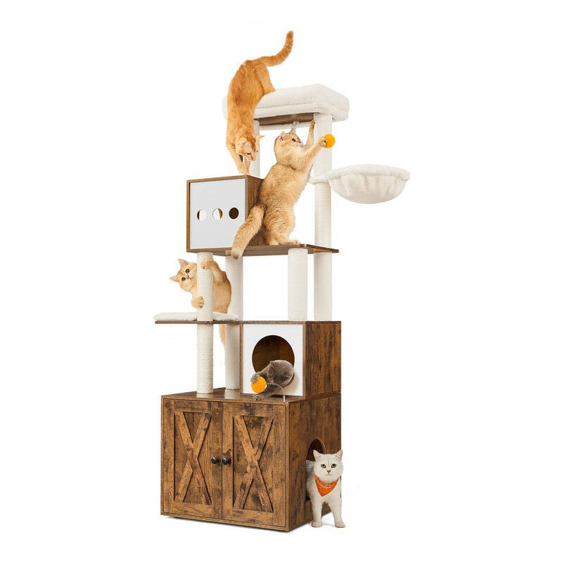 Feandrea Arbre à Chat Moderne avec Cache-litière, Tour de Jeu, Griffoir avec Maison de Toilette, 180 cm, Niche, Plateforme, Tapis Lavables, Marron Rustique PCT116X01