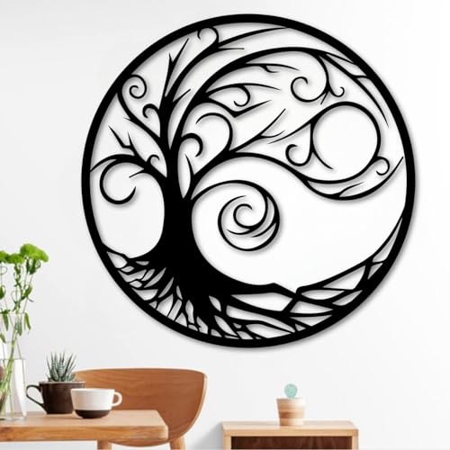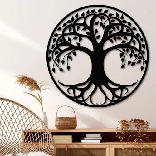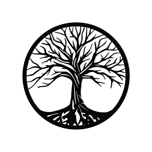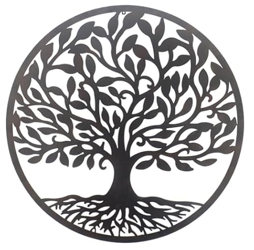 WLLWMYLY Grand arbre de vie en métal - Sculpture murale en forme d'arbre généalogique creux - Panneau mural à suspendre pour bureau, chambre à coucher, salon, (60 * 60cm)