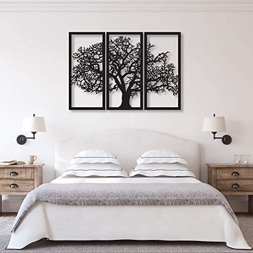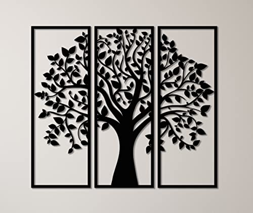 Tubibu - Lot de 3 tableaux de type panneau avec cadre « Arbre de vie, arbre familial » - sculpture en métal pour décoration murale, de salon, de chambre - (31,8 x 70 cm) x 3 pièces