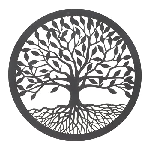 rongweiwang Arbre de Vie en métal, Fabrication de Coupe exquise, Art Mural, Sculpture Ronde Unique en métal, décoration Murale d'arbre de Vie, Noir, 30 cm