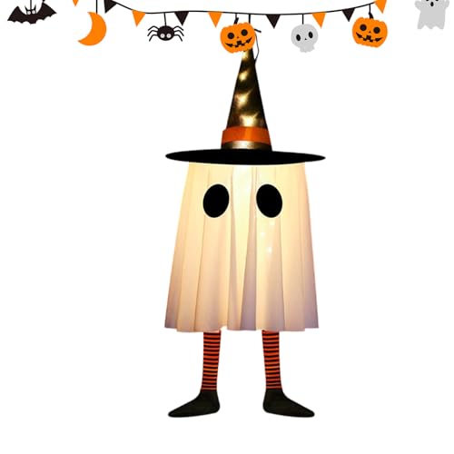 Décoration fantôme pour sapin de Noël, pendentif fantôme lumineux avec chapeau de sorcière pour arbre | Décoration effrayante pour les jours fériés, jardin, salon, terrasse