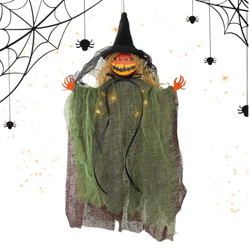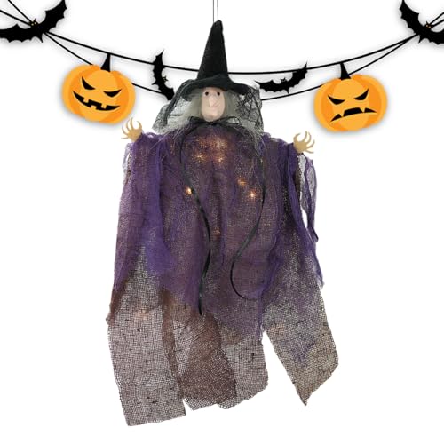 Furtryvl Décoration d'Halloween sorcière – Pendentif lumineux effrayant de sorcière pour arbre | Décoration d'Halloween lumineuse, décorations de vacances effrayantes pour salon, carnaval, jardin