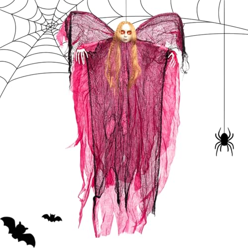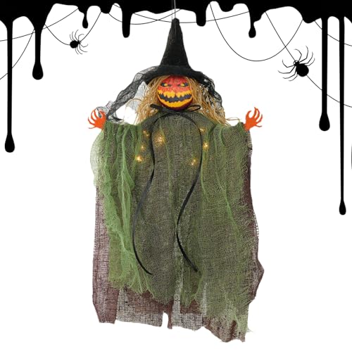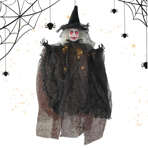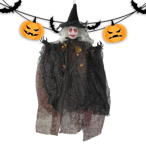 shpuuyy Décoration d'Halloween, pendentif de sorcière effrayant lumineux pour arbre, décoration d'Halloween lumineuse, accessoire de maison hantée effrayante pour intérieur ou extérieur, mur de salon